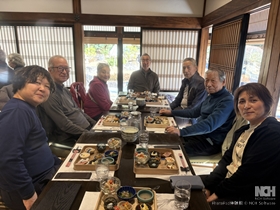 | コース | スタート里山交流館9:55 ⇒ 小野神社9:56 ⇒ 萬松寺10:05 ⇒ 六地蔵10:12 ⇒ 牛舎10:27 ⇒ 見晴らし広場10:30 ⇒ No.8ベンチで休憩(10分間) ⇒ No.10バイオトイレ11:11 ⇒ 奈良ばい谷戸11:20 ⇒ 炭焼き小屋11:30 ⇒ 浅間神社12:00 ⇒ 小野バス停12:15 ⇒ ゴール里山交流館12:20 ⇒(車)⇒ 新年会会場 鶴川香山園13:00 |