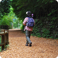 | 都民の森 入口で大きな看板に迎えられる。5分足らずで森林館へ。左に曲がればウッドチップの路となる | ウッドチップの路 森林館から三頭大滝まで全長1km、約20分のコース。ウッドチップが敷かれていて歩きやすい。ヒノキの香りがただよう | 三頭大滝 落差33mある。滝の前に滝見橋がかかっており、大滝を間近で見ることができる | ||