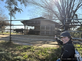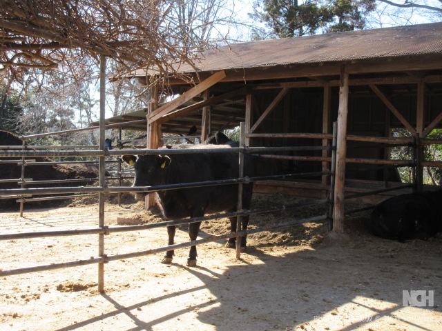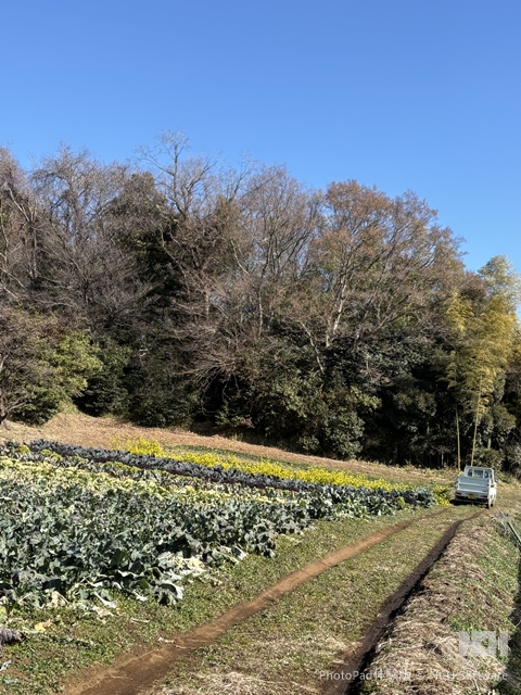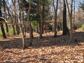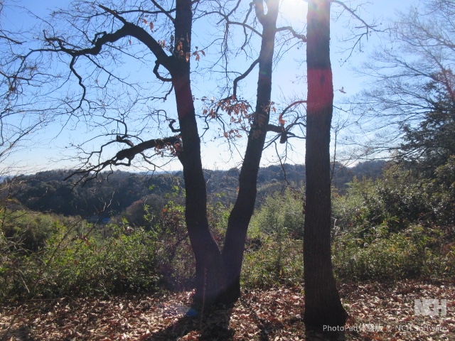 途中、やはり7から8人で回るグループと遭遇したが、ほぼすれ違う人もなくのんびり散策。 ジィジィの待っている畑(お茶をしたり、焼き芋をしたり、みんなが楽しむ)の直売棚でみかんやキンカンを買い里山歩きを満喫。 しばらくゆるい坂を上ると牛舎があり、親子連れがおとづれて興味深そうにみていました。 それから暫く歩くと見晴らし広場に到着。鶴川の町がよく見えました。 落ち葉の絨毯、ザクザクと落ち葉を踏みしめると落ち葉の香り、特にホウバがよい香りでした。 | |