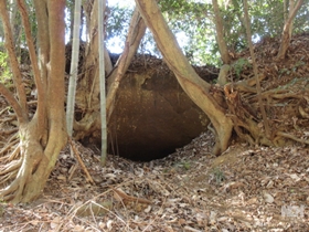 11時半くらいに出発。 緩やかな登りをあがったところが、浅間神社。参拝した後神社を折り返しのんびり下る。 途中、気を付けていないと見落としそうなところに、半ば埋もれるような戦車壕跡がありました。 バス通りに降りて15分程あるき、12時半には、今朝スタートした里山交流館に到着。 | |