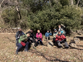 | コース | スタート里山交流館9:55 ⇒ 小野神社9:56 ⇒ 萬松寺10:05 ⇒ 六地蔵10:12 ⇒ 牛舎10:27 ⇒ 見晴らし広場10:30 ⇒ No.8ベンチで休憩(10分間) ⇒ No.10バイオトイレ11:11 ⇒ 奈良ばい谷戸11:20 ⇒ 炭焼き小屋11:30 ⇒ 浅間神社12:00 ⇒ 小野バス停12:15 ⇒ ゴール里山交流館12:20 ⇒(車)⇒ 新年会会場 鶴川香山園13:00 |